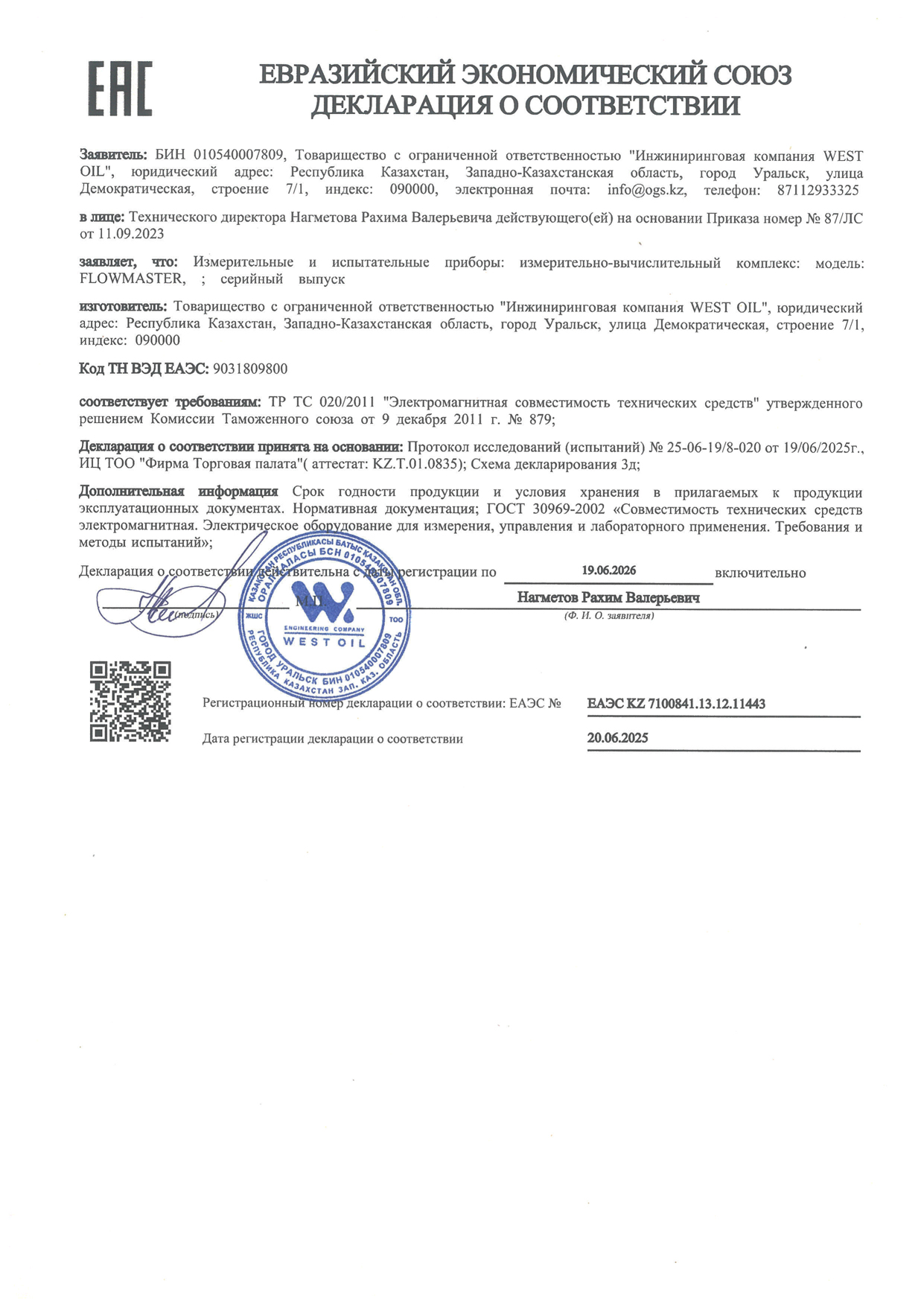 The FlowMaster measuring and computing complex (hereinafter referred to as MCC) and additional input/output modules are microprocessor devices for processing signals from field devices (temperature, pressure, differential pressure sensors, chromatographs) and calculating, on their basis, flow readings and other process parameters of natural gas in real time.